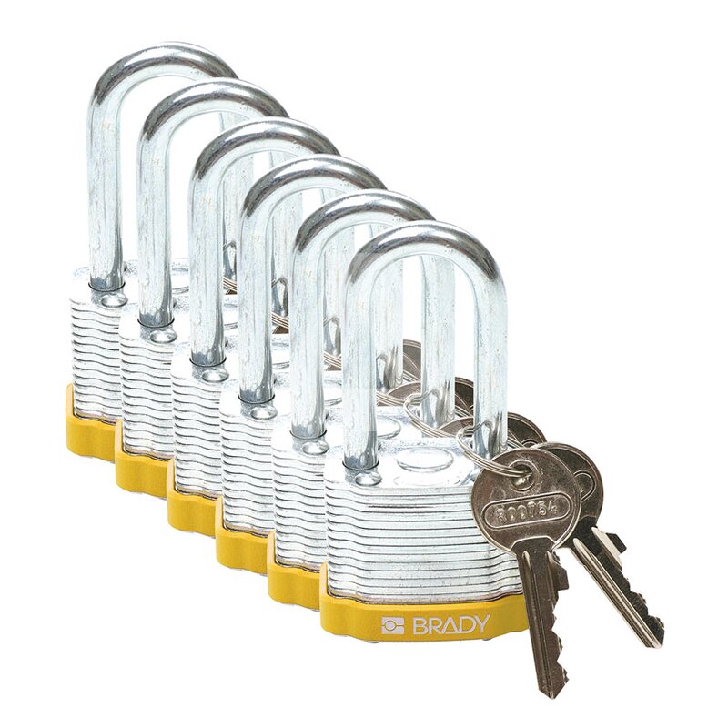Kłódka LOTO stalowa, laminowana, szekla 38 mm, żółta (6 szt.), 814098