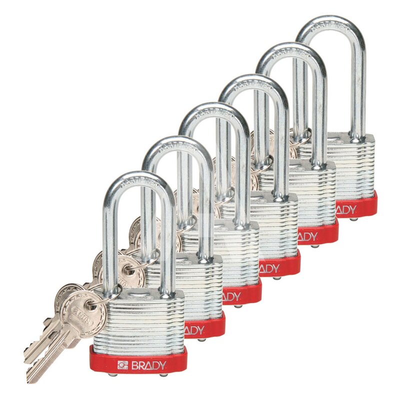 Kłódka LOTO stalowa, laminowana, szekla 51 mm, czerwona (6 szt.), 814106