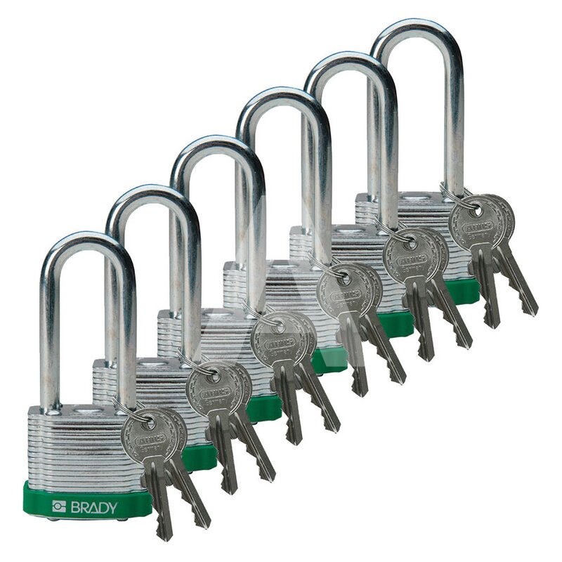 Kłódka LOTO stalowa, laminowana, szekla 51 mm, zielona (6 szt.), 814108