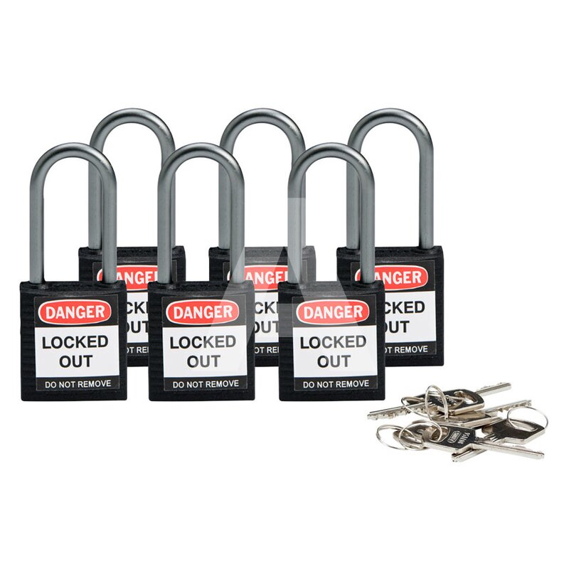 Kłódka bezpieczeństwa LOTO, kompaktowa, nylonowa, szekla 38 mm, czarna (6 szt.), 814125