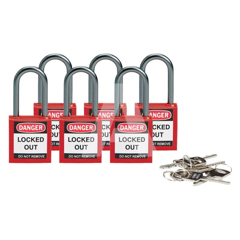 Kłódka bezpieczeństwa LOTO, kompaktowa, nylonowa, szekla 38 mm, czerwona (6 szt.), 814126