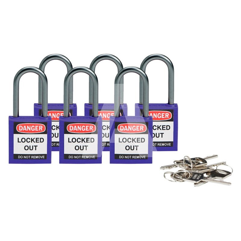 Kłódka bezpieczeństwa LOTO, kompaktowa, nylonowa, szekla 38 mm, fioletowa (6 szt.), 814131
