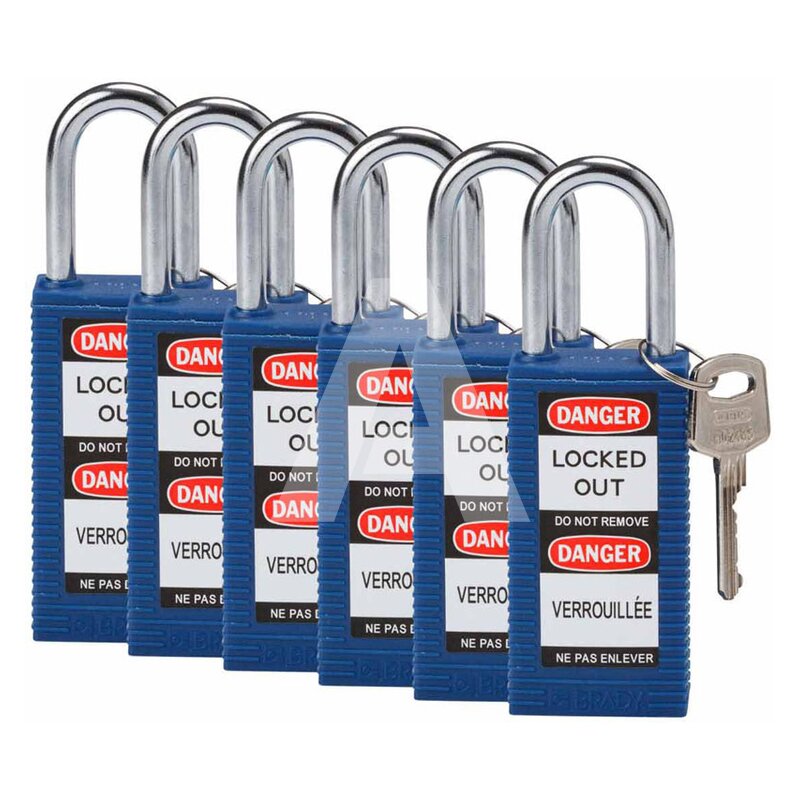 Kłódka bezpieczeństwa LOTO, z długim korpusem, niebieska (6 szt.), 834462