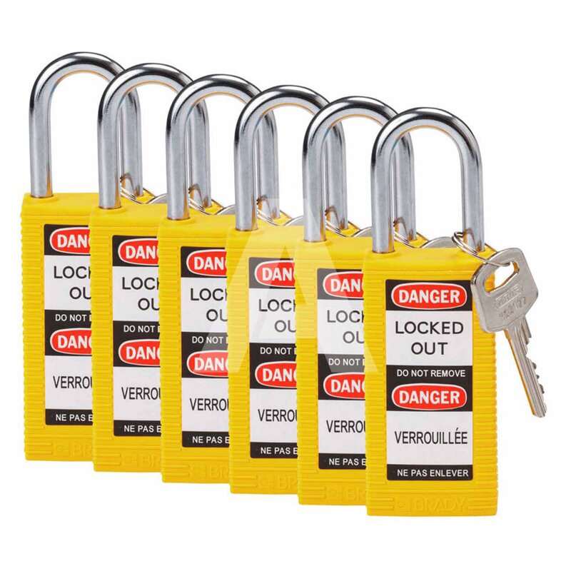 Kłódka bezpieczeństwa LOTO, z długim korpusem, żółta (6 szt.), 834465
