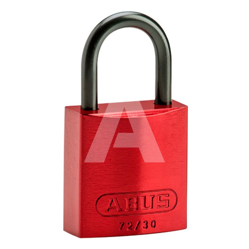 Materiał obudowy i szekli: aluminium, kolor: czerwony, zamykana na klucz, wysokość szekli: 25 mm.
