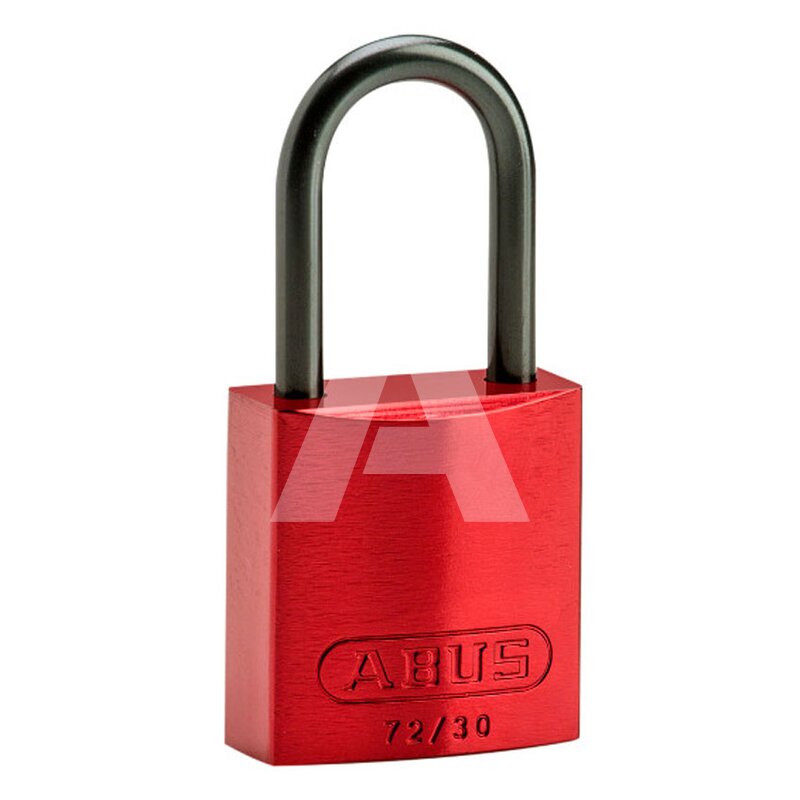 Materiał obudowy i szekli: aluminium, kolor: czerwony, zamykana na klucz, wysokość szekli: 40 mm.