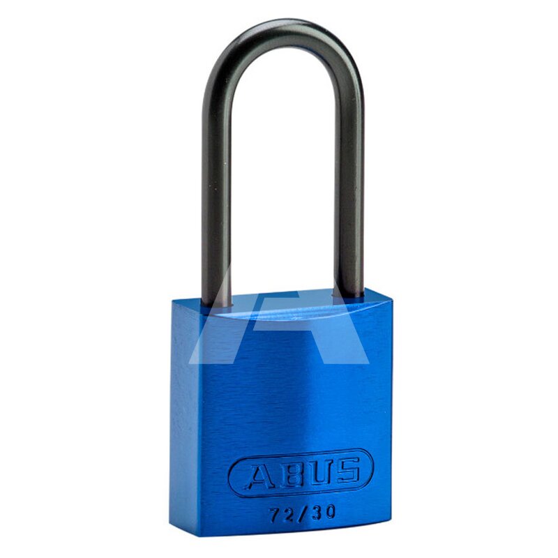 Materiał obudowy i szekli: aluminium, kolor: niebieski, zamykana na klucz, wysokość szekli: 50 mm.