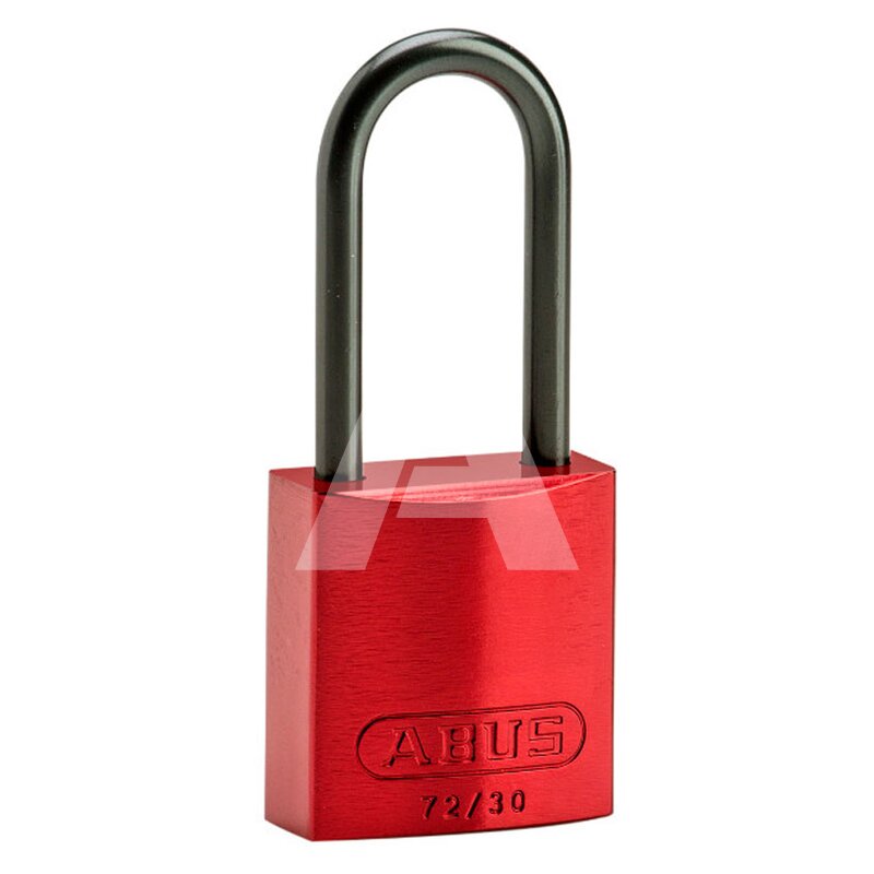 Materiał obudowy i szekli: aluminium, kolor: czerwony, zamykana na klucz, wysokość szekli: 50 mm.