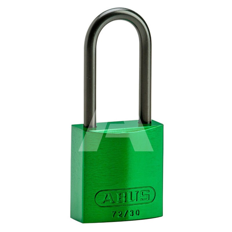 Materiał obudowy i szekli: aluminium, kolor: zielony, zamykana na klucz, wysokość szekli: 50 mm.