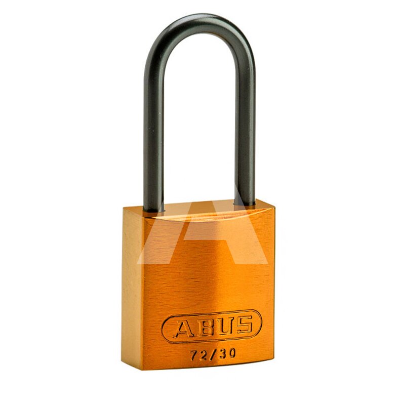Materiał obudowy i szekli: aluminium, kolor: pomarańczowy, zamykana na klucz, wysokość szekli: 50 mm.