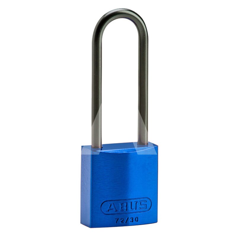 Materiał obudowy i szekli: aluminium, kolor: niebieski, zamykana na klucz, wysokość szekli: 75 mm.