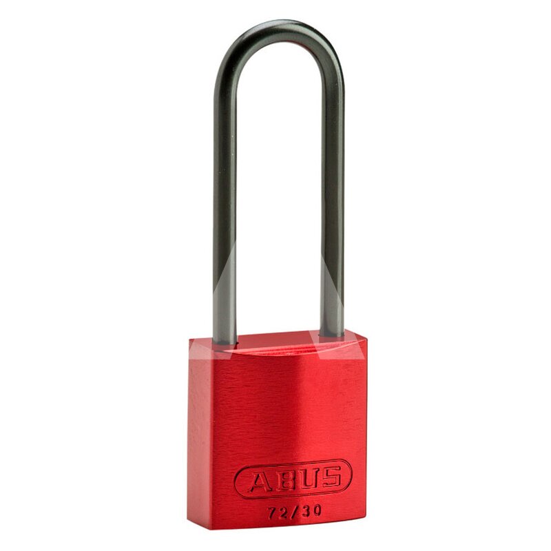 Materiał obudowy i szekli: aluminium, kolor: czerwony, zamykana na klucz, wysokość szekli: 75 mm.