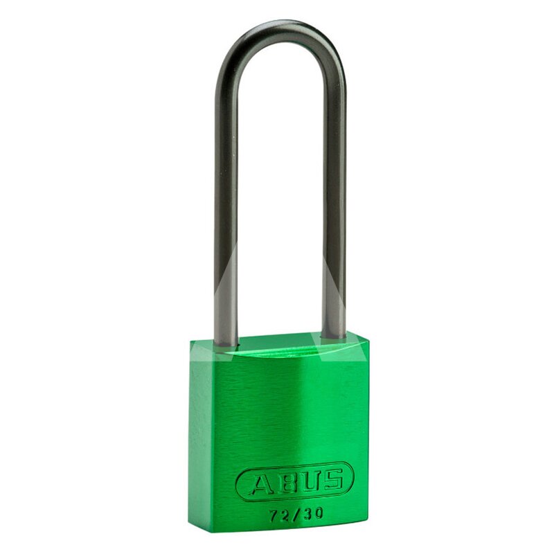 Materiał obudowy i szekli: aluminium, kolor: zielony, zamykana na klucz, wysokość szekli: 75 mm.
