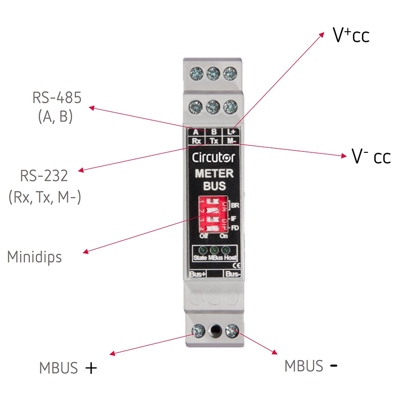 - Przetwornik CMBUS-8 umożliwia urządzeniom z komunikacją RS-485 Modbus Master komunikację z różnymi jednostkami podrzędnymi M-BUS.