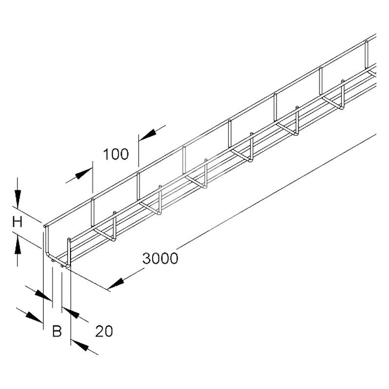 Korytko siatkowe GRS, 60x60x3000mm, drut 4.5mm, stal nierdzewna, GRS 60.060 E3