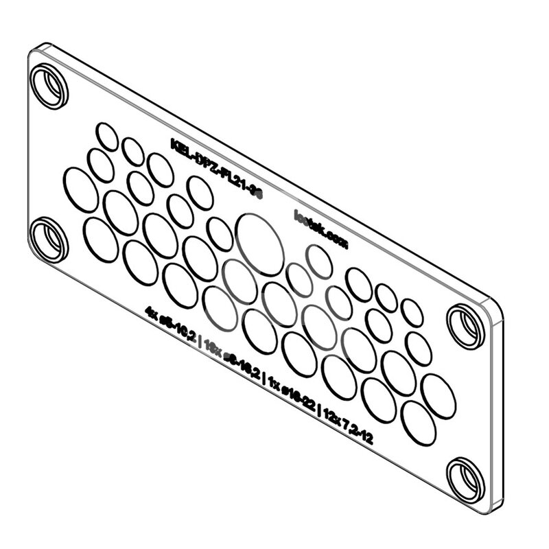 Przepusty kablowe KEL-DPZ-FL21 (IP65) zostały opracowane specjalnie dla standardowego wycięcia FL21 i umożliwiają bezpieczne i szybkie prowadzenie kabli bez złączy. Możliwość montażu za pomocą śrub lub nitów, w zależności od wymagań aplikacji. Śruby nie są dołączone do zestawu. Nity można zamówić opcjonalnie (IP54). Zaślepki ST-B mogą być używane do uszczelniania przebitych membran po usunięciu kabli.