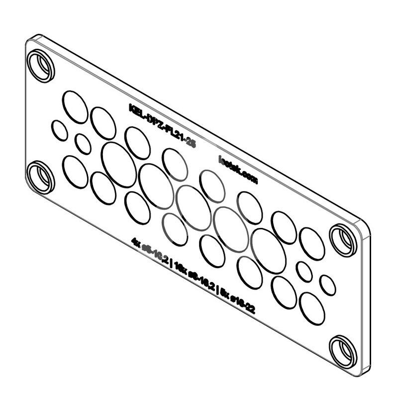 Przepusty kablowe KEL-DPZ-FL21 (IP65) zostały opracowane specjalnie dla standardowego wycięcia FL21 i umożliwiają bezpieczne i szybkie prowadzenie kabli bez złączy. Możliwość montażu za pomocą śrub lub nitów, w zależności od wymagań aplikacji. Śruby nie są dołączone do zestawu. Nity można zamówić opcjonalnie (IP54). Zaślepki ST-B mogą być używane do uszczelniania przebitych membran po usunięciu kabli.