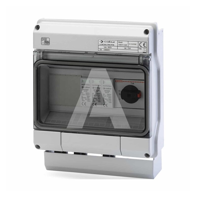 Jednofazowa rozdzielnica PV DC ISB0101CA10 do małych instalacji: 1× wejście stringu i 1× wyjście MPPT, z kompletem zabezpieczeń po stronie AC. Przystosowana do napięcia 1000 V DC , w szczelnej obudowie IP65 - idealna do montażu na zewnątrz. Dedykowane do instalacji fotowoltaicznych małej i średniej mocy.