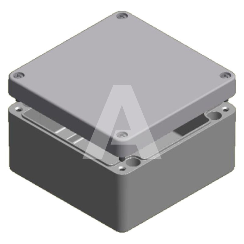 Skrzynka zaciskowa, model MBA 161690 (0101102500). Materiał: aluminium malowane proszkowo, kolor: szary, wymiary: 160x160x90 mm.