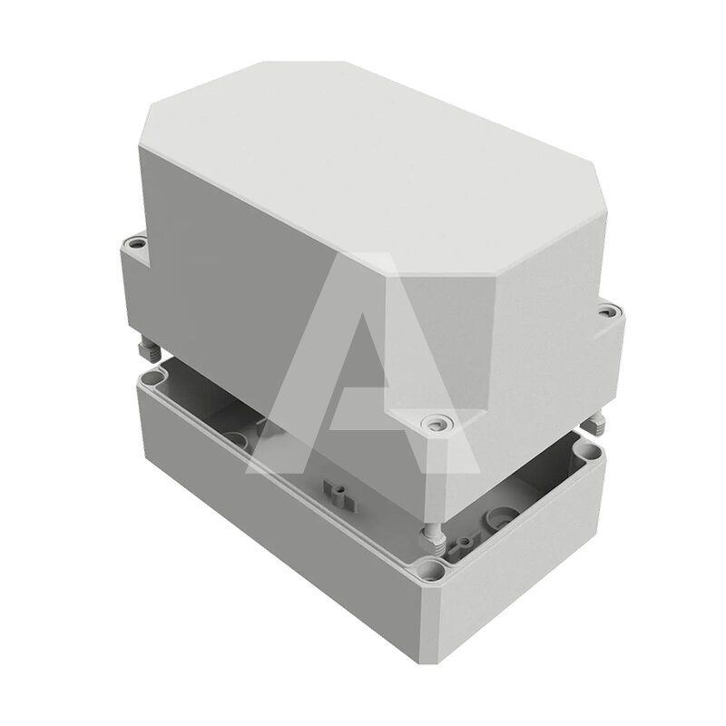 Skrzynka zaciskowa, model MBI-PC 181114 O (0901108140). Materiał obudowy i pokrywy: poliwęglan wzmocniony włóknem szklanym (GF10), kolor: jasnoszary, wymiary: 180x110x137 mm.