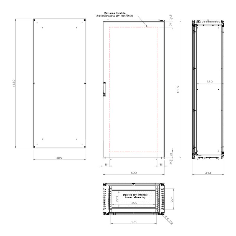 - Pełne drzwi – lepsza ochrona aparatury przed kurzem i dostępem osób nieuprawnionych, gładka powierzchnia ułatwia utrzymanie czystości.