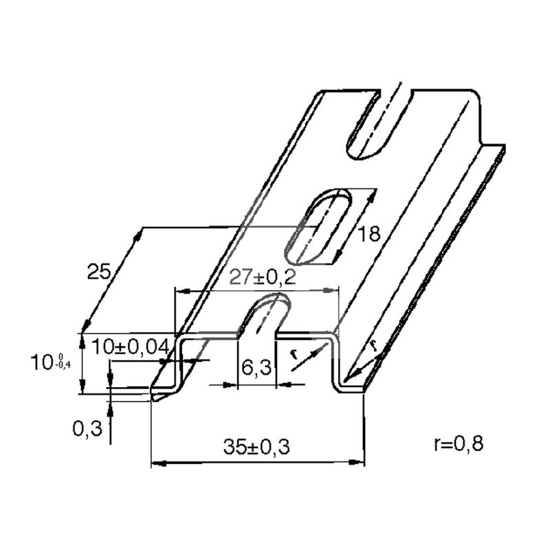 Szyna montażowa DIN stalowa, 35x10x2000 mm, perforowana (6,3x18 mm).