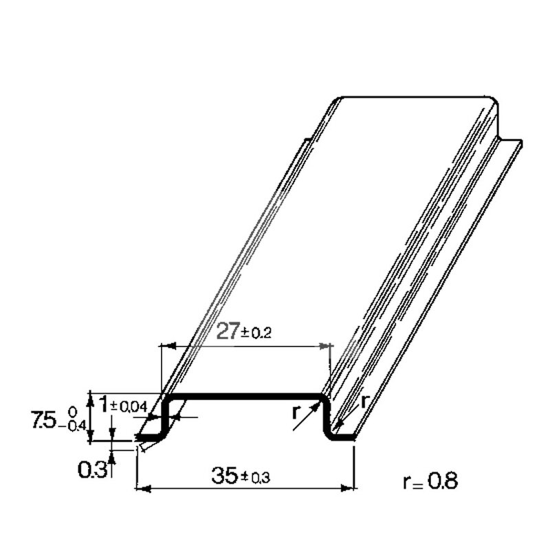 Szyna montażowa DIN niska,pełna, stalowa, Sendzimir, 35x7,5x1000 mm, TS35/Sz-1m