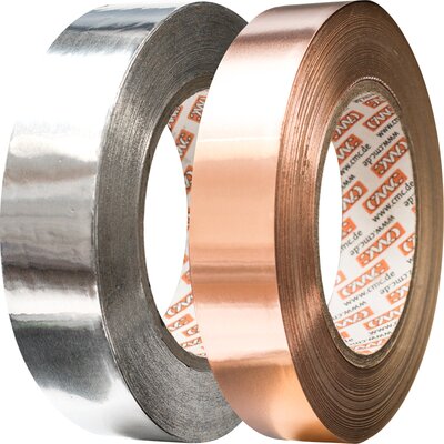 Taśmy aluminiowe z klejem przewodzącym stosowane głównie do ekranowania promieniowania elektromagnetycznego EMC. Taśmy ta łączą w sobie zalety aluminium, takie jak lekkość i odporność na korozję, z właściwościami przewodzącymi kleju. Dzięki temu, taśma aluminiowa jest skutecznym rozwiązaniem w eliminowaniu zakłóceń elektromagnetycznych, które mogą wpływać na działanie urządzeń elektronicznych. Jest często używana w aplikacjach, gdzie jednocześnie waga i ochrona przed zakłóceniami elektromagnetycznymi są bardzo ważne.