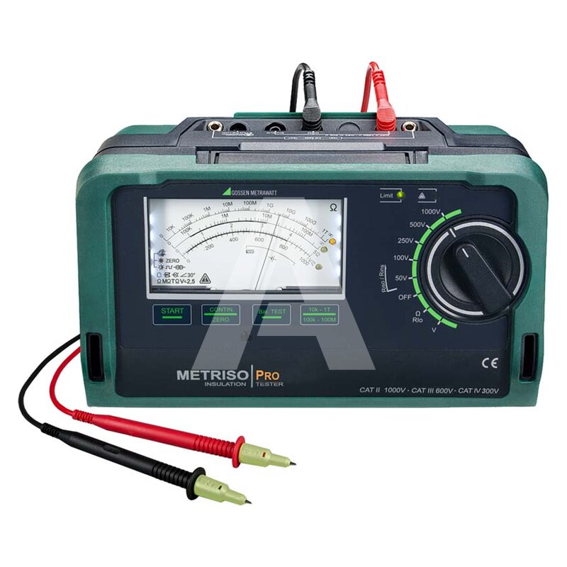 METRISO PRO tester rezystancji izolacji pozwalający na szybkie i efektywne wykonanie pomiarów ochronnych zgodnych z DIN VDE 0100, ÖVE-EN 1 (Austria), SEV 1000 (Szwajcaria), oraz przepisami określonymi w innych krajach. Pomiar izolacji dla EN 61557-2 / VDE 0413 część 2. Pomiar małych rezystancji dla EN 61557-4 / VDE 0413 część 4. Pomiar napięcia do 1 000 V.