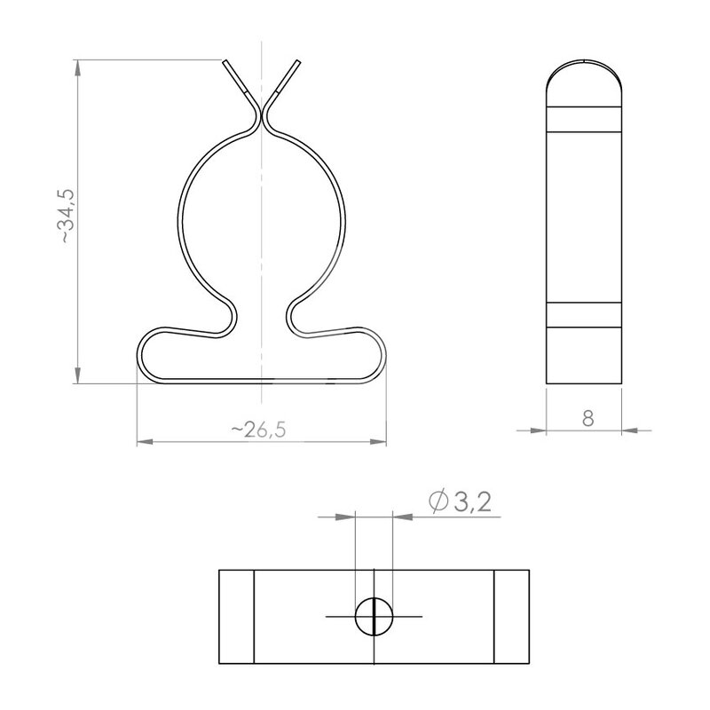 Klamra uziemiająca EMCSKL 17-22, model 36207. Materiał: stal ocynkowana, montaż: za pomocą nitów, wymiary: 8x26,5x34,5 mm. Przeznaczona do uziemienia 1 kabla, zakres mocowania: 17-22 mm. Zaciski ekranowe EMC są stosowane tam, gdzie ekran kabla musi być połączony z uziemieniem. Są one łatwe w użyciu i skuteczne w uziemianiu pojedynczych kabli.
