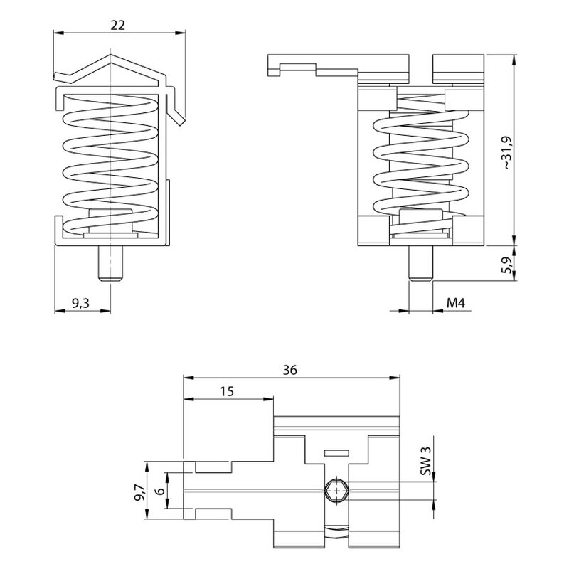 Klamra EMC przykręcana SKZ 3-8, model 36222. Materiał: blacha stalowa, montaż: przykręcana, wymiary: 30,5x12,8x31,8 mm. Przeznaczona do uziemienia 1 kabla, zakres mocowania: 3-8 mm. Klamra jest stosowana wszędzie tam, gdzie ekran kabla musi być uziemiony. Jest łatwa w użyciu i skuteczna w uziemieniu pojedynczych kabli. Kabel może być mocowany za pomocą opaski kablowej.