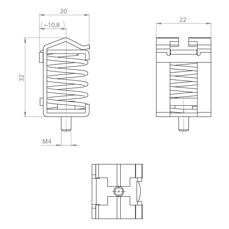 - Sprężynowa konstrukcja nie wymaga regulacji i trwale utrzymuje kontakt z ekranem kabla
