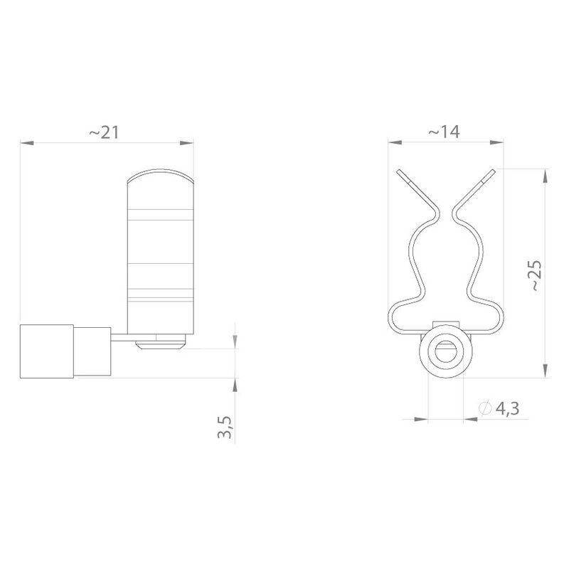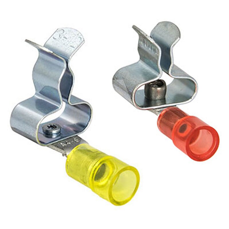 Materiał: stal ocynkowana i poliwęglan, sposób montażu: nitowanie, wymiary: 21x14x25 mm. Przeznaczona do uziemiania 1 kabla, zakres mocowania: 8-11 mm. Klamra jest stosowana wszędzie tam, gdzie ekran kabla musi być uziemiony. Jest łatwa w użyciu i skuteczna w uziemieniu pojedynczych kabli. Umożliwiają bezpieczne zamocowanie kabla za pomocą opasek kablowych. Zaciski ekranów są montowane na pierścieniowych końcówkach kablowych, które można zaciskać na kablach PE. Wielkość średnicy pierścieniowej końcówki kablowej jest oznaczona różnymi kolorami (czerwone, niebieskie, żółte).