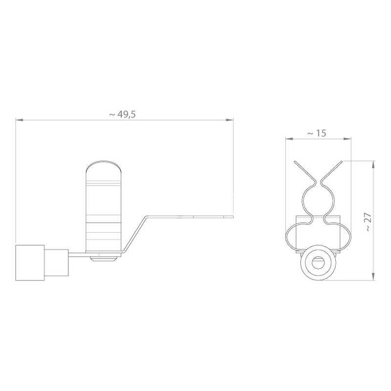 Materiał: stal ocynkowana i poliwęglan, sposób montażu: nitowanie, wymiary: 49,5x15x27 mm. Przeznaczona do uziemiania 1 kabla, zakres mocowania: 3-12 mm. Klamra jest stosowana wszędzie tam, gdzie ekran kabla musi być uziemiony. Jest łatwa w użyciu i skuteczna w uziemieniu pojedynczych kabli. Umożliwiają bezpieczne zamocowanie kabla za pomocą opasek kablowych. Zaciski ekranów są montowane na pierścieniowych końcówkach kablowych, które można zaciskać na kablach PE. Wielkość średnicy pierścieniowej końcówki kablowej jest oznaczona różnymi kolorami (czerwone, niebieskie, żółte).