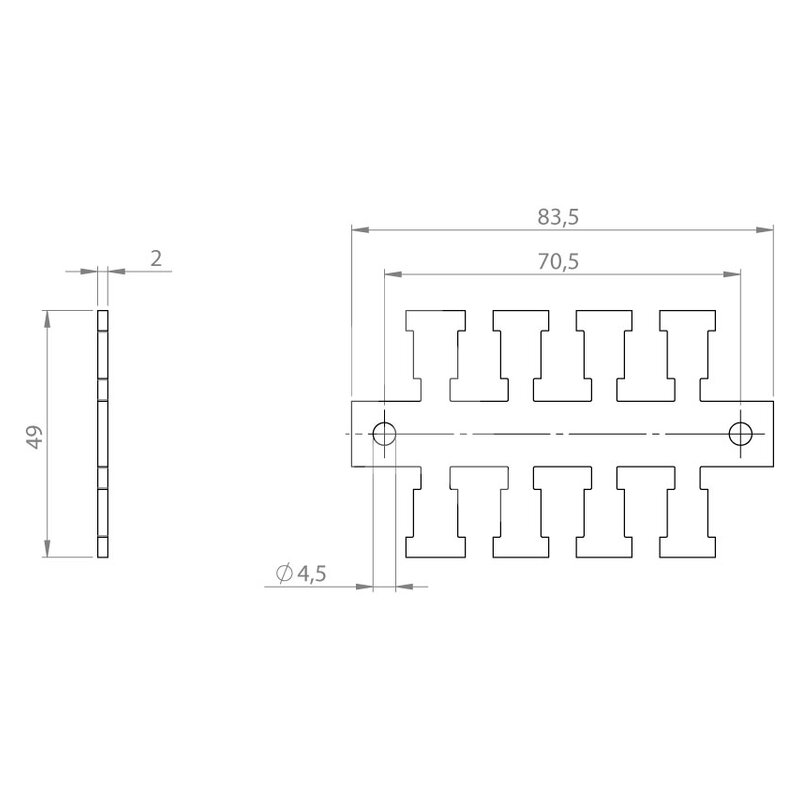 Listwa uziemiająca EMC KAFM 4, model 36424. Materiał: stal nierdzewna, montaż: przykręcana na śruby, wymiary: 83,5x49x2 mm. Przeznaczona do uziemienia 4 kabli. Listwa ma uniwersalne zastosowanie, doskonale sprawdza się do w przypadku zakłóceń uziemienia na ekranie kabla.
