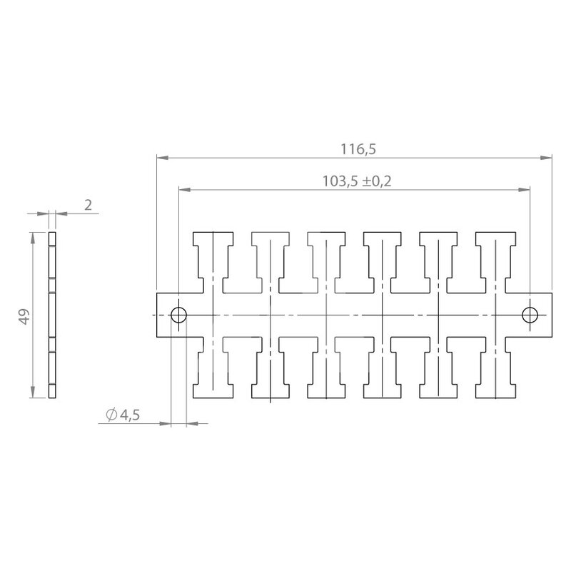 Listwa uziemiająca EMC KAFM 6, model 36426. Materiał: stal nierdzewna, montaż: przykręcana na śruby, wymiary: 116,5x49x2 mm. Przeznaczona do uziemienia 6 kabli. Listwa ma uniwersalne zastosowanie, doskonale sprawdza się do w przypadku zakłóceń uziemienia na ekranie kabla.