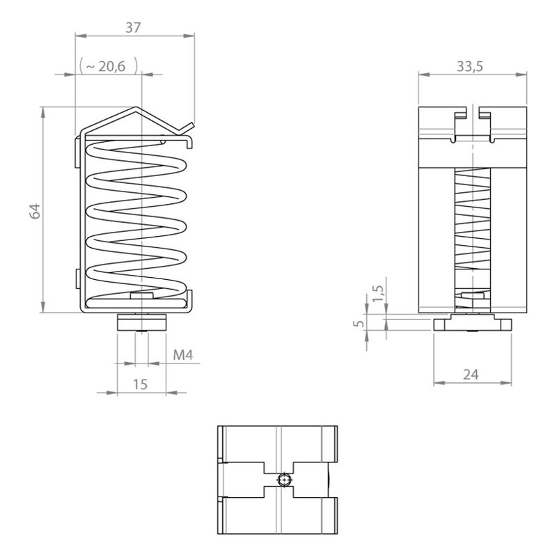 - Sprężynowa konstrukcja nie wymaga regulacji i trwale utrzymuje kontakt z ekranem kabla