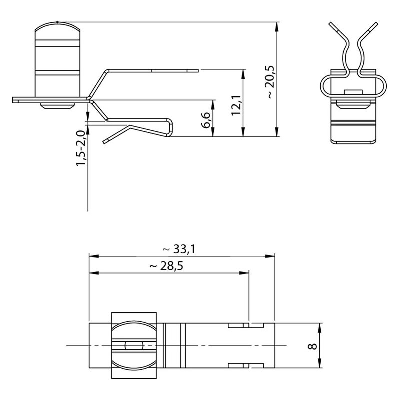 Klamra uziemiająca EMC PFKZ-A/SKL 3-6, model 36779.2. Materiał: stal ocynkowana, montaż: na zaczep, wymiary: 33x12x20,5 mm. Przeznaczona do uziemienia 1 kabla, zakres mocowania: 3-6 mm. Grubość ściany do mocowania: 1,5-2 mm. Klamra jest stosowana wszędzie tam, gdzie ekran kabla musi być uziemiony. Jest łatwa w użyciu i skuteczna w uziemieniu pojedynczych kabli. Zacisk EMC PFKZ/SKL to zaciski typu SKL przeznaczone do mocowania na krawędzi blachy, za pomocą zaczepu. Te zaciski ekranowe stosowane są tam, gdzie nie jest możliwe lub nie jest wskazane połączenie śrubowe. Klamra jest po prostu nakładana na krawędź blachy. Zaczep zapewnia pewny chwyt, także w przypadku drgań. Kable mogą być mocowane za pomocą opasek kablowych.