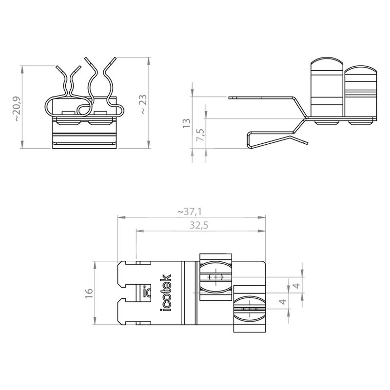 Podwójna klamra uziemiająca EMC PFSZ2/SKL 31, model 36789.31 Materiał: stal ocynkowana, montaż: zatrzaskowy na szynę 10x3 mm, wymiary: 37x20x23 mm. Przeznaczona do uziemienia 2 kabli, zakres mocowania: 6-8 mm i 1,5-3 mm. Klamra jest stosowana wszędzie tam, gdzie ekran kabla musi być uziemiony. Jest łatwa w użyciu i skuteczna w uziemieniu kabli. Zacisk EMC PFSZ2/SKL to zaciski typu SKL przeznaczony do mocowania na szynie 10x3 mm. Kable mogą być mocowane za pomocą opaski kablowej