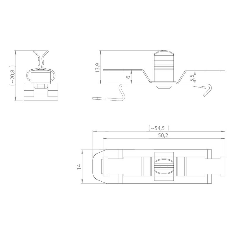 Materiał: stal, sposób montażu: na szynę DIN 35 mm, wymiary: 54,5x14x20,8 mm. Przeznaczona do uziemiania 1 kabla, zakres mocowania: 1,5-3 mm. Klamra jest stosowana wszędzie tam, gdzie ekran kabla musi być uziemiony. Jest łatwa w użyciu i skuteczna w uziemieniu pojedynczych kabli.