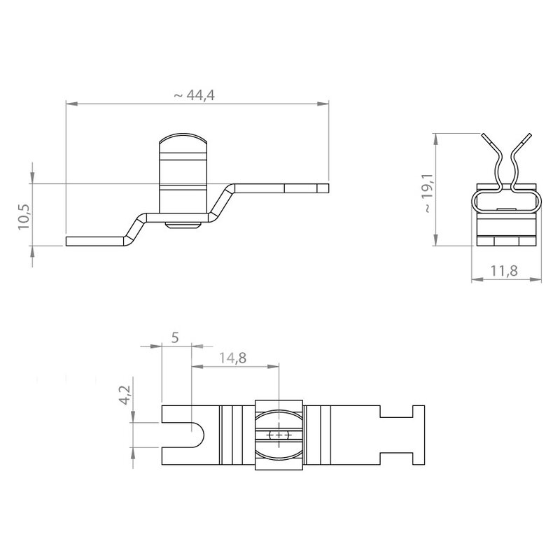 Klamra uziemiająca EMC LFZ-U4/SKL 3-6, model 36886.2 Materiał: stal ocynkowana, montaż: śrubowy, wymiary: 44,4x11,8x19,1 mm, wymiar 2: x11,8x19,1 mm. Przeznaczona do uziemienia 1 kabla, zakres mocowania: 3-6 mm. Zaciski ekranowe EMC są stosowane tam, gdzie ekran kabla musi być połączony z uziemieniem. Są one łatwe w użyciu i skuteczne w uziemianiu pojedynczych kabli. Zacisk ekranujący LFZ-U|SKL jest mocowany na śruby M4. Podczas montażu wystarczy lekko poluzować istniejącą śrubę, aby można było wsunąć zacisk pod spód przed ponownym dokręceniem śruby.