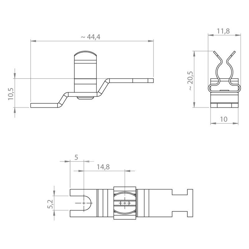 - Sprężynowa konstrukcja nie wymaga regulacji i trwale utrzymuje kontakt z ekranem kabla
