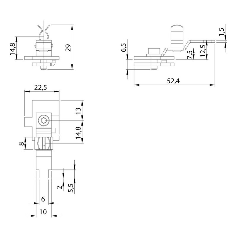 Materiał: stal, sposób montażu: na szynę typu C, wymiary: 52,4x22,5x29 mm. Przeznaczona do uziemiania 1 kabla, zakres mocowania: 6-8 mm. Klamra jest stosowana wszędzie tam, gdzie ekran kabla musi być uziemiony. Jest łatwa w użyciu i skuteczna w uziemieniu pojedynczych kabli. W przypadku stosowania typów ze zintegrowanym odciążeniem kable mogą być mocowane przez płaszcz kabla za pomocą opasek kablowych. W ten sposób uzyskuje się odciążenie zgodnie z normą EN 62444. Dzięki specjalnej konstrukcji zakresy zacisku są bardzo duże przy stosunkowo niewielkich wymiarach.