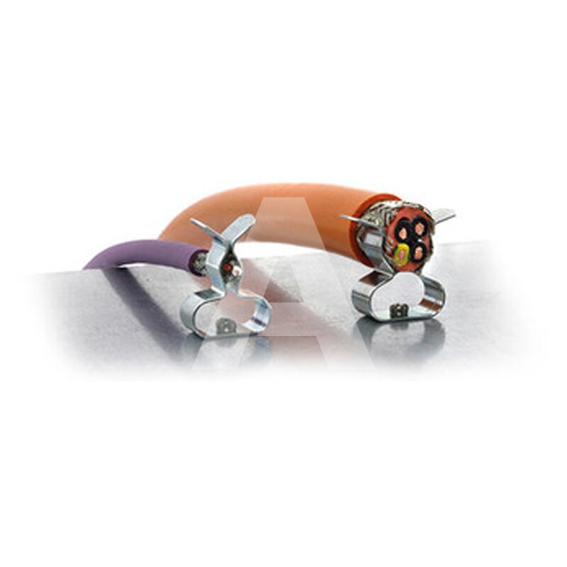 Klamra uziemiająca EMC MSKL 8-18, model 37602. Materiał: stal ocynkowana, montaż: za pomocą nitów, wymiary: 8x20x27 mm. Przeznaczona do uziemienia 1 kabla, zakres mocowania: 8-18 mm. Zaciski ekranowe EMC są stosowane tam, gdzie ekran kabla musi być połączony z uziemieniem. Są one łatwe w użyciu i skuteczne w uziemianiu pojedynczych kabli.