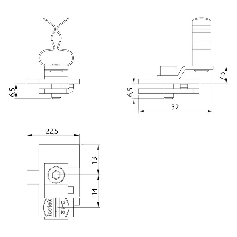 Materiał: stal, sposób montażu: na szynę typu C, wymiary: 32x22,5x34,5 mm. Przeznaczona do uziemiania 1 kabla, zakres mocowania: 3-12 mm. Klamra jest stosowana wszędzie tam, gdzie ekran kabla musi być uziemiony. Jest łatwa w użyciu i skuteczna w uziemieniu pojedynczych kabli. W przypadku stosowania typów ze zintegrowanym odciążeniem kable mogą być mocowane przez płaszcz kabla za pomocą opasek kablowych. W ten sposób uzyskuje się odciążenie zgodnie z normą EN 62444. Dzięki specjalnej konstrukcji zakresy zacisku MSKL są bardzo duże przy stosunkowo niewielkich wymiarach.