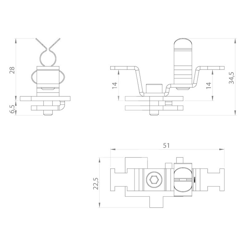 Materiał: stal, sposób montażu: na szynę typu C, wymiary: 51x22,5x28 mm. Przeznaczona do uziemiania 1 kabla, zakres mocowania: 3-12 mm. Klamra jest stosowana wszędzie tam, gdzie ekran kabla musi być uziemiony. Jest łatwa w użyciu i skuteczna w uziemieniu pojedynczych kabli. W przypadku stosowania typów ze zintegrowanym odciążeniem kable mogą być mocowane przez płaszcz kabla za pomocą opasek kablowych. W ten sposób uzyskuje się odciążenie zgodnie z normą EN 62444. Dzięki specjalnej konstrukcji zakresy zacisku MSKL są bardzo duże przy stosunkowo niewielkich wymiarach.
