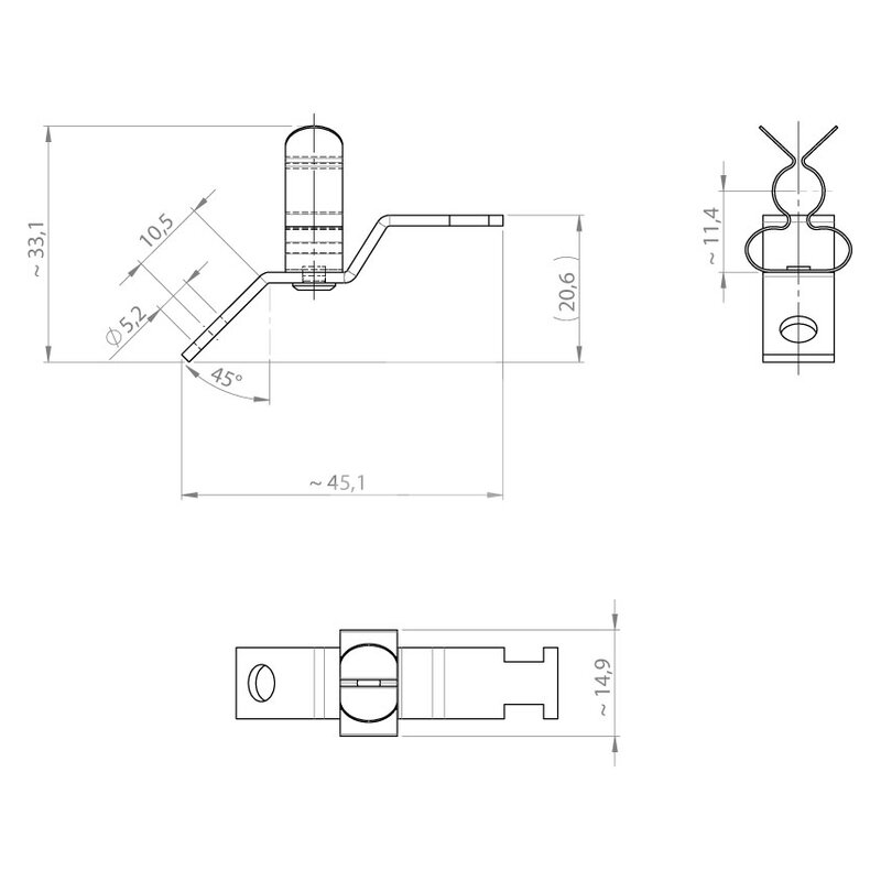 Klamra uziemiająca EMC LF Z- M (45°)/MSKL 3-12, model 37660.1 Materiał: stal ocynkowana, montaż: śrubowy, wymiary: 45,1x14,9x33,1 mm. Klamra przeznaczona do uziemienia 1 kabla, zakres mocowania: 3-12 mm. Wersja kątowa 45° nadaje się do zastosowania w przetwornicach częstotliwości różnych producentów. Dzięki temu kabel może zostać wprowadzony do kanału kablowego pod kątem 45°. Dzięki specjalnej konstrukcji zakresy mocowania MSKL są bardzo duże przy stosunkowo niewielkich wymiarach. Zaciski ekranowe EMC są stosowane tam, gdzie ekran kabla musi być połączony z uziemieniem. Są one łatwe w użyciu i skuteczne w uziemianiu pojedynczych kabli.