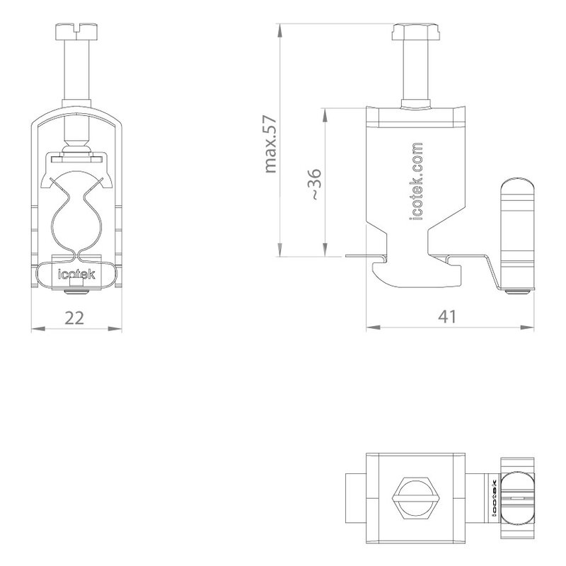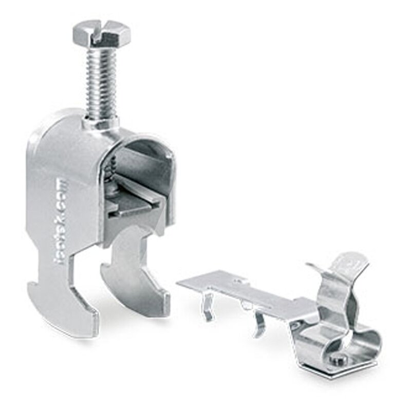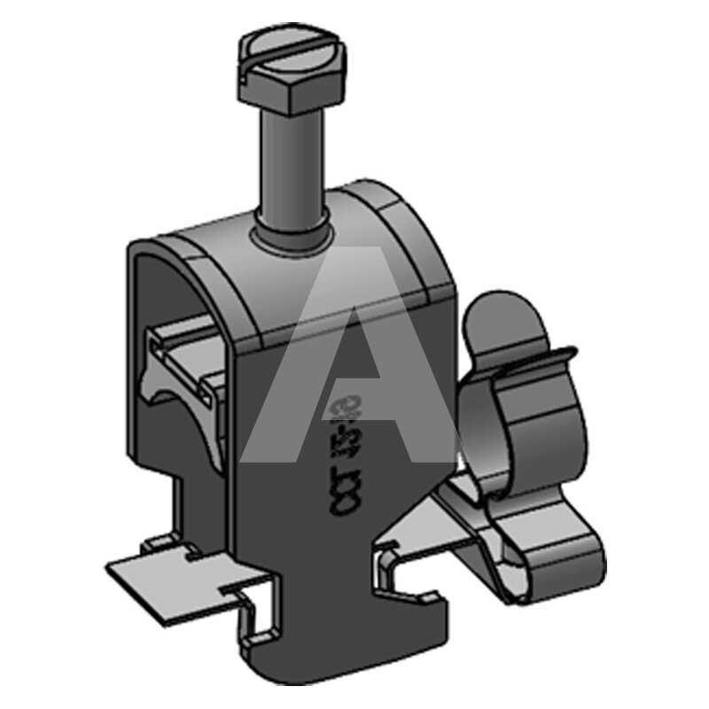 Materiał: stal, sposób montażu: na szynę typu C, wymiary: 45,9x22x36 mm. Przeznaczona do uziemiania 1 kabla, zakres mocowania: 8-18 mm. Klamra jest stosowana wszędzie tam, gdzie ekran kabla musi być uziemiony. Jest łatwa w użyciu i skuteczna w uziemieniu pojedynczych kabli. Komplet składa się z klamry uziemiającej z zaciskiem na szynę typu C oraz z uchwytu montażowego dla kabla.