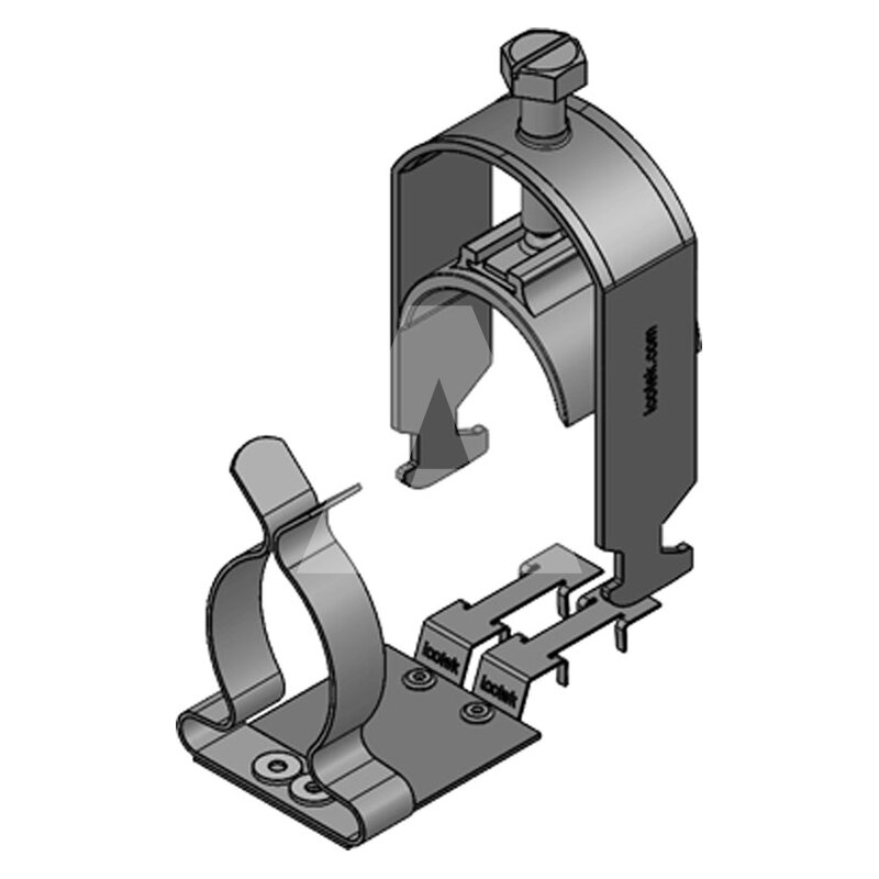 Materiał: stal, sposób montażu: na szynę typu C, wymiary: 87,7x55x83 mm. Przeznaczona do uziemiania 1 kabla, zakres mocowania: 38-48 mm. Klamra jest stosowana wszędzie tam, gdzie ekran kabla musi być uziemiony. Jest łatwa w użyciu i skuteczna w uziemieniu pojedynczych kabli. Komplet składa się z klamry uziemiającej z zaciskiem na szynę typu C oraz z uchwytu montażowego dla kabla.