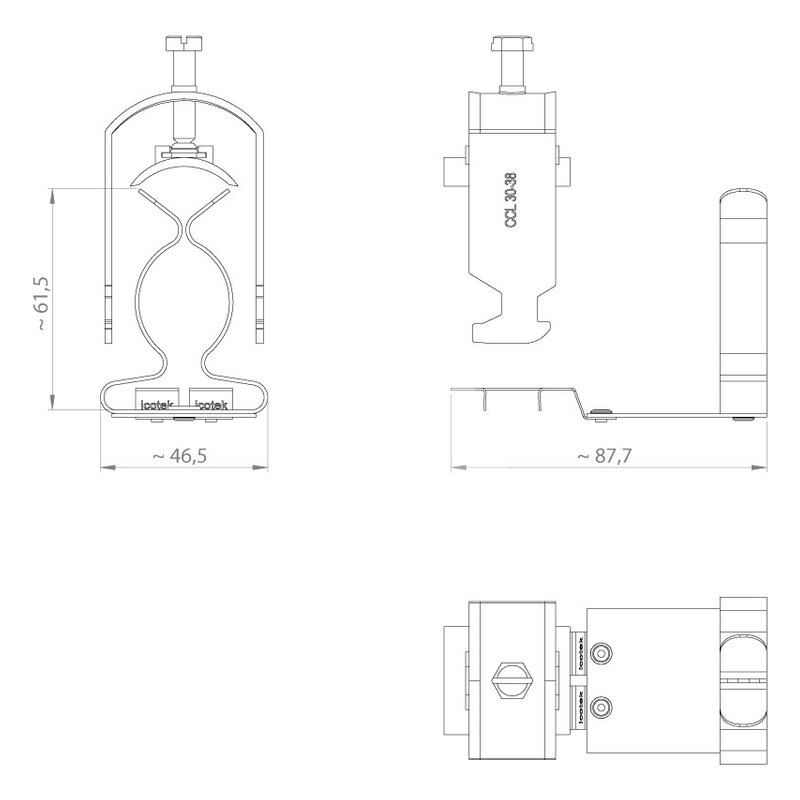 Materiał: stal, sposób montażu: na szynę typu C, wymiary: 87,7x44x62 mm. Przeznaczona do uziemiania 1 kabla, zakres mocowania: 30-38 mm. Klamra jest stosowana wszędzie tam, gdzie ekran kabla musi być uziemiony. Jest łatwa w użyciu i skuteczna w uziemieniu pojedynczych kabli. Komplet składa się z klamry uziemiającej z zaciskiem na szynę typu C oraz z uchwytu montażowego dla kabla.